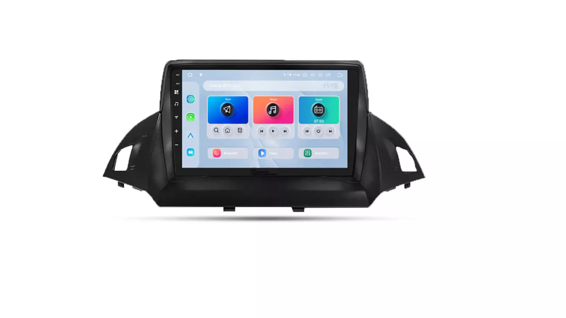 The radio is compatible with the Ford Kuga Escape 2013, 2014, 2015, and 2016 models. Includes plug-and-play wiring harness and Canbus-compatible factory steering wheel controls.