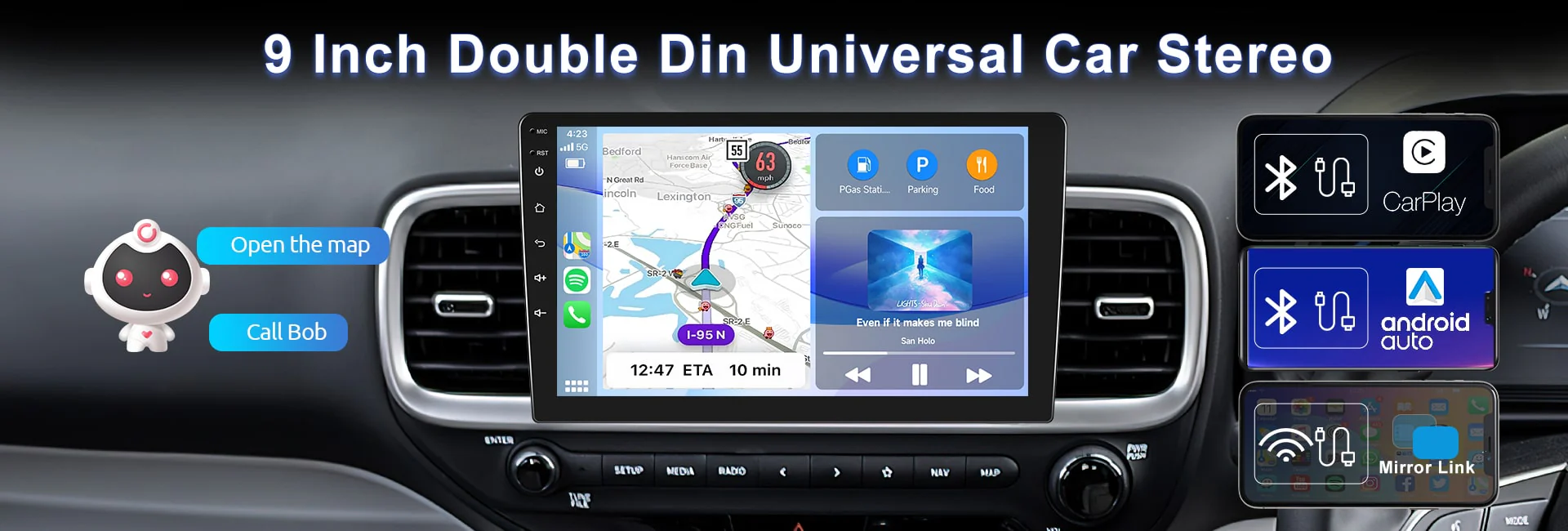 This is a 9-inch universal double-DIN Android car head unit. Please carefully review our car radio dimensions (installation dimensions are 178 x 100mm/7.01 in x 3.94 in) and measure the dimensions of your dashboard. If you are unsure of your vehicle’s compatibility, please send us pictures of your car radio’s front mounting position and rear interface for further verification.